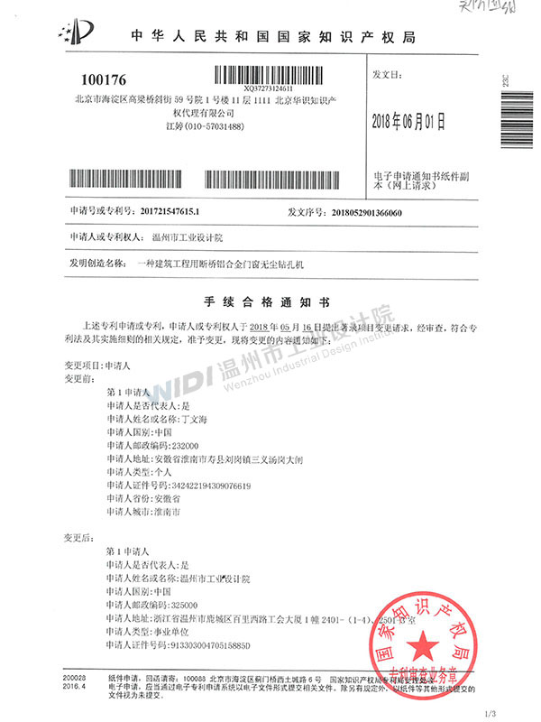一種建筑工程用斷橋鋁合金門窗無塵鉆孔機(jī)手續(xù)合格通知書 (3)